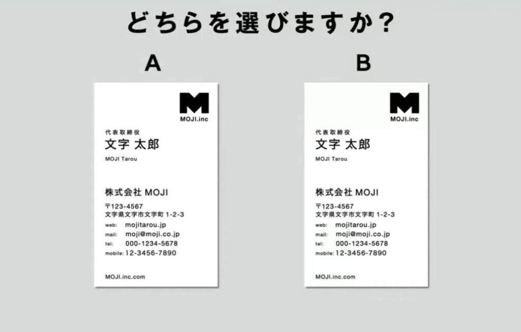 名刺の文字組みは、一見シンプルだけど、ジャンプ率、余白、行頭の揃え方など、細部にこそデザインの本質が詰まっている。